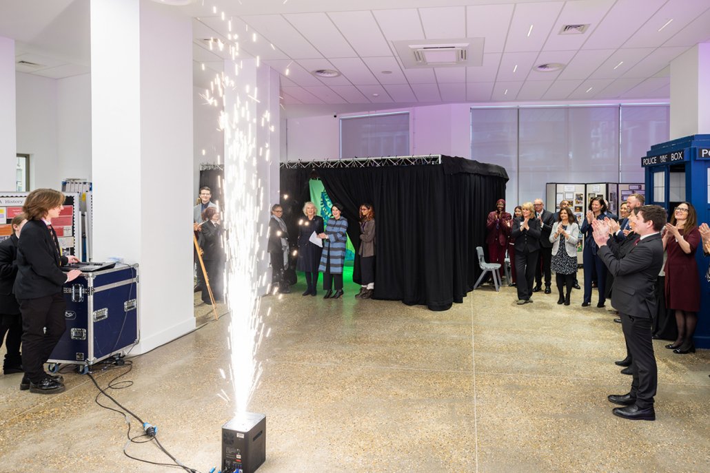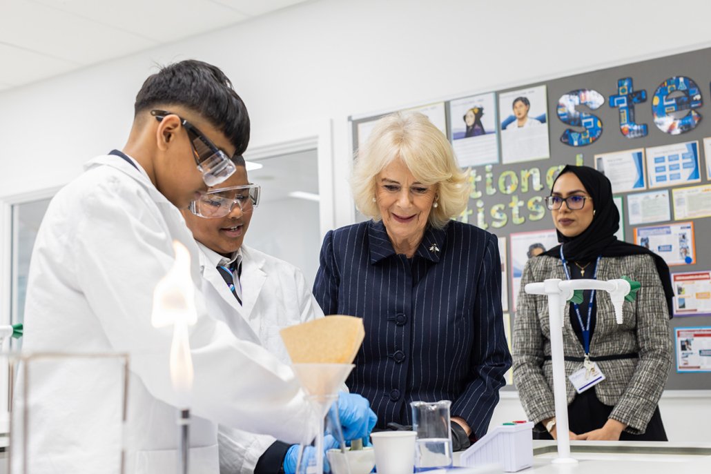After meeting some of the school’s key delivery partners, including Kier, Architype, Walsh, Tower Hamlets Council, the Department for Education and St George PLC, who were instrumental in designing the building with sustainability and green spaces in mind, Her Majesty toured the school’s state-of-the-art facilities and observed student-led activities, including: