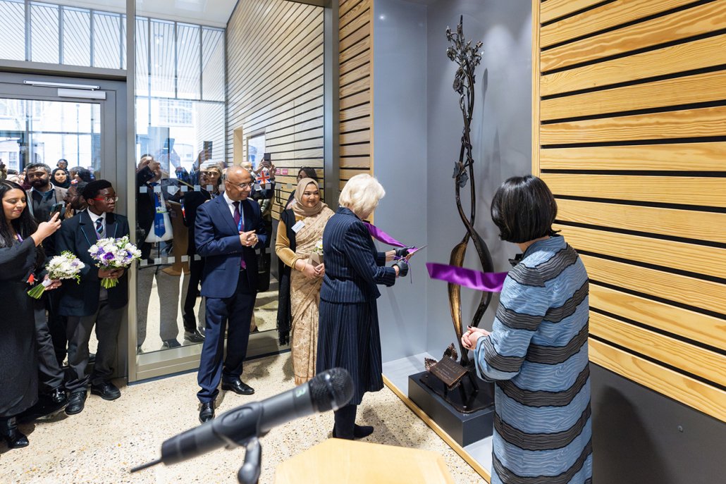 The day concluded with Her Majesty cutting a ribbon to unveil a community sculpture marking the formal opening of the new school, accompanied by a performance by the Mulberry Schools Trust Choir.