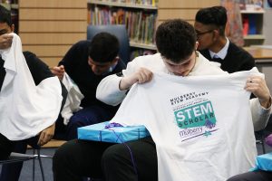 It features our STEM scholars from Mulberry Academy Shoreditch, Mulberry School for Girls and Mulberry UTC receiving their beautifully wrapped gifts. The gifts also contained a branded ‘STEM Scholar’ t-shirt, which our students showed off with pride!